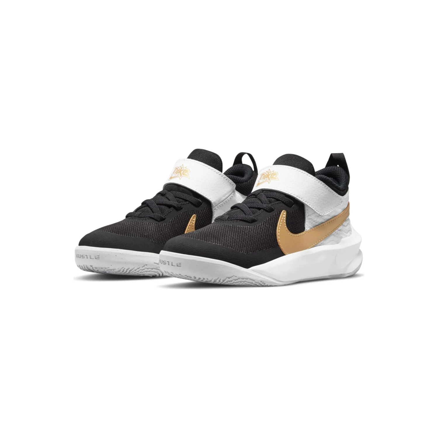Les futurs joueurs de basketball sautent et bondissent avec la Nike Team Hustle D 10, pour un succès assurĂ©. Avec un motif d’adhĂ©rence personnalisĂ© conçu pour les enfants, un amorti doux et un design procurant durabilitĂ© et maintien, ces chaussures inspirĂ©es du basketball sont parfaites pour les futures stars prĂŞtes Ă tout gagner Ă la rĂ©crĂ©ation (et au basketball, bien sĂ»r).Grâce Ă l’analyse de rĂ©partition des pressions, la semelle en caoutchouc est conçue pour assurer une bonne adhĂ©rence lors des mouvements rapides. Le talon incurvĂ© et les rainures flexibles assurent une foulĂ©e naturelle Ă chaque pas.Le strap Ă scratch, les lacets Ă©lastiques et l’espace supplĂ©mentaire au niveau de la cheville permettent d’enfiler et de retirer facilement la chaussure.Le mesh offre plus de respirabilitĂ© pour garder les pieds au frais. Le cuir autour du talon apporte stabilitĂ© et maintien lorsque les enfants courent et sautent.Mousse souple sous le pied et autour du talon pour un amorti lĂ©ger.Pointe renforcĂ©e conçue pour assurer une rĂ©sistance optimale lorsque les enfants traĂ®nent les pieds par terre.Lettre « X » sous la chaussure faisant rĂ©fĂ©rence Ă la dixième Ă©dition de la sĂ©rie Hustle D.