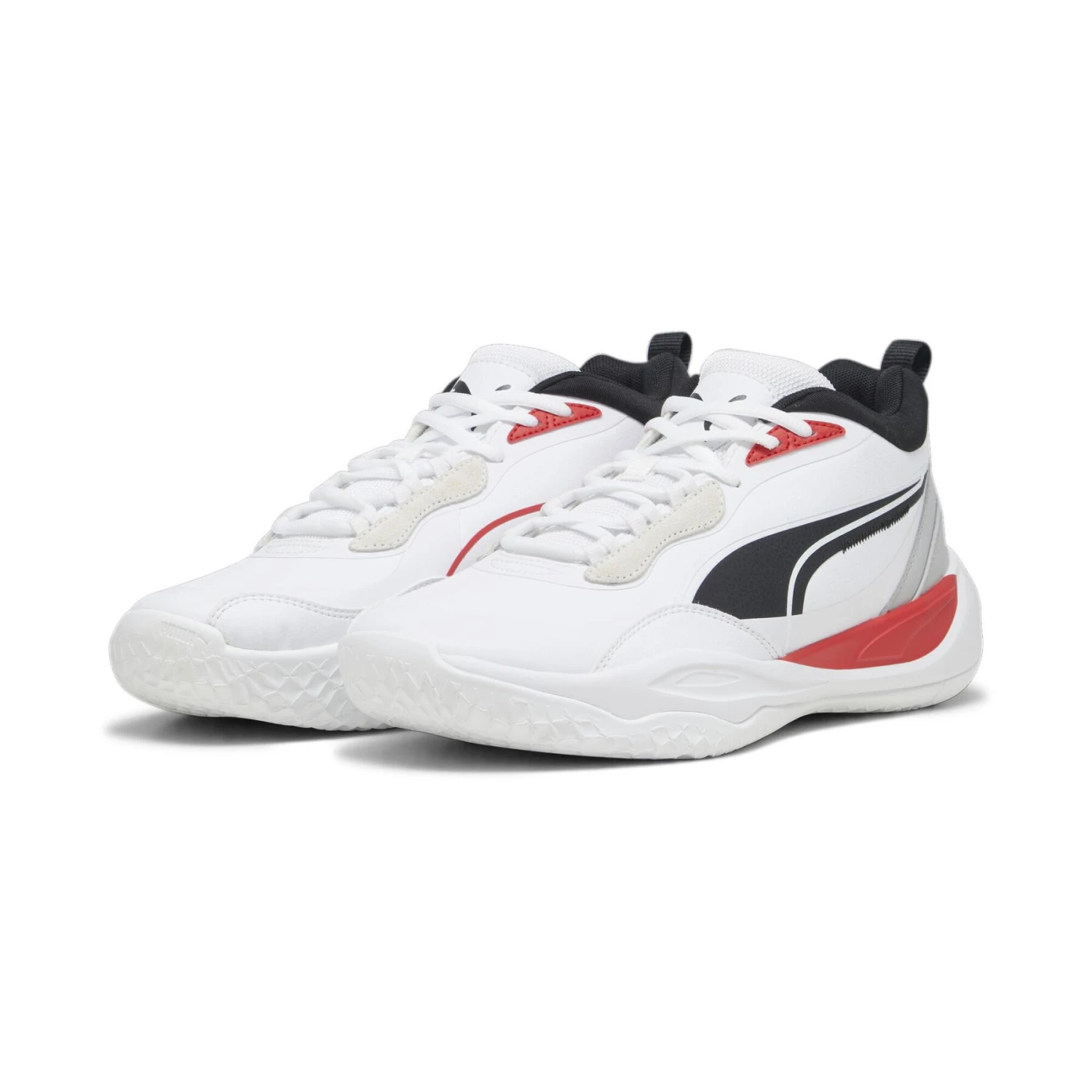 La Playmaker Pro reprend l’ADN de la ligne Puma Hoops, avec un marquage de la semelle intermédiaire et des superpositions lifestyle, le tout dans un ensemble performant jouable au plus haut niveau. La version intermédiaire a un col plus haut autour de la cheville que la version basse.